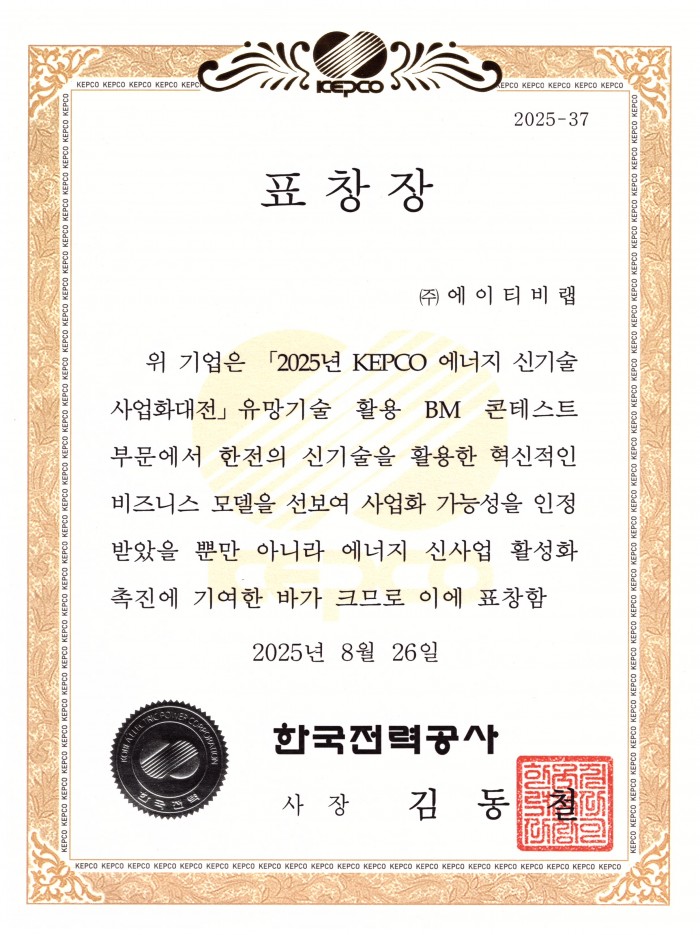 2025년 KEPCO 에너지신기술 사업화대전 최우수상 수상